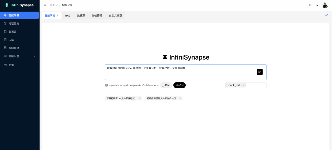实际上除了多Excel, 我们还能对接各种业务数据库和大数据计算引擎,并且可以对各种数据源做联合计算。运营同学实际上每天都要处理各种Excel统计运营效果,现在,他们可以不再需要手动统计数据,直接给 InfiniSynapse 这个分析师提需求,帮自己做分析了。