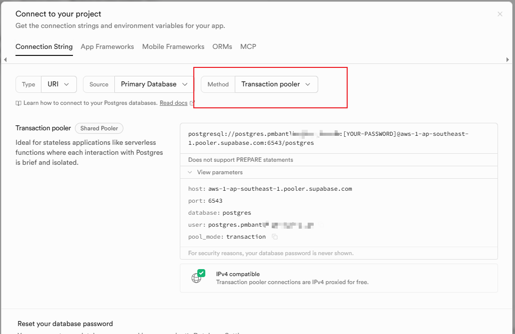 -U postgres.pmbantlhqgwrkvjzavym→ 用户名(包含项目标识) -
