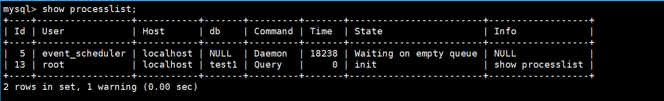 可以告诉我们当前有哪些用户连接到我们的MySQL,如果查出某个用户不是你正常登陆的,很有可能你 的数据库被人入侵了。以后大家发现自己数据库比较慢时,可以用这个指令来查看数据库连接情况。