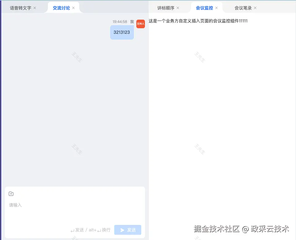 - 内置功能区域,主要是通用组件本身提供的内置能力,比如讨论和语音转文字等。