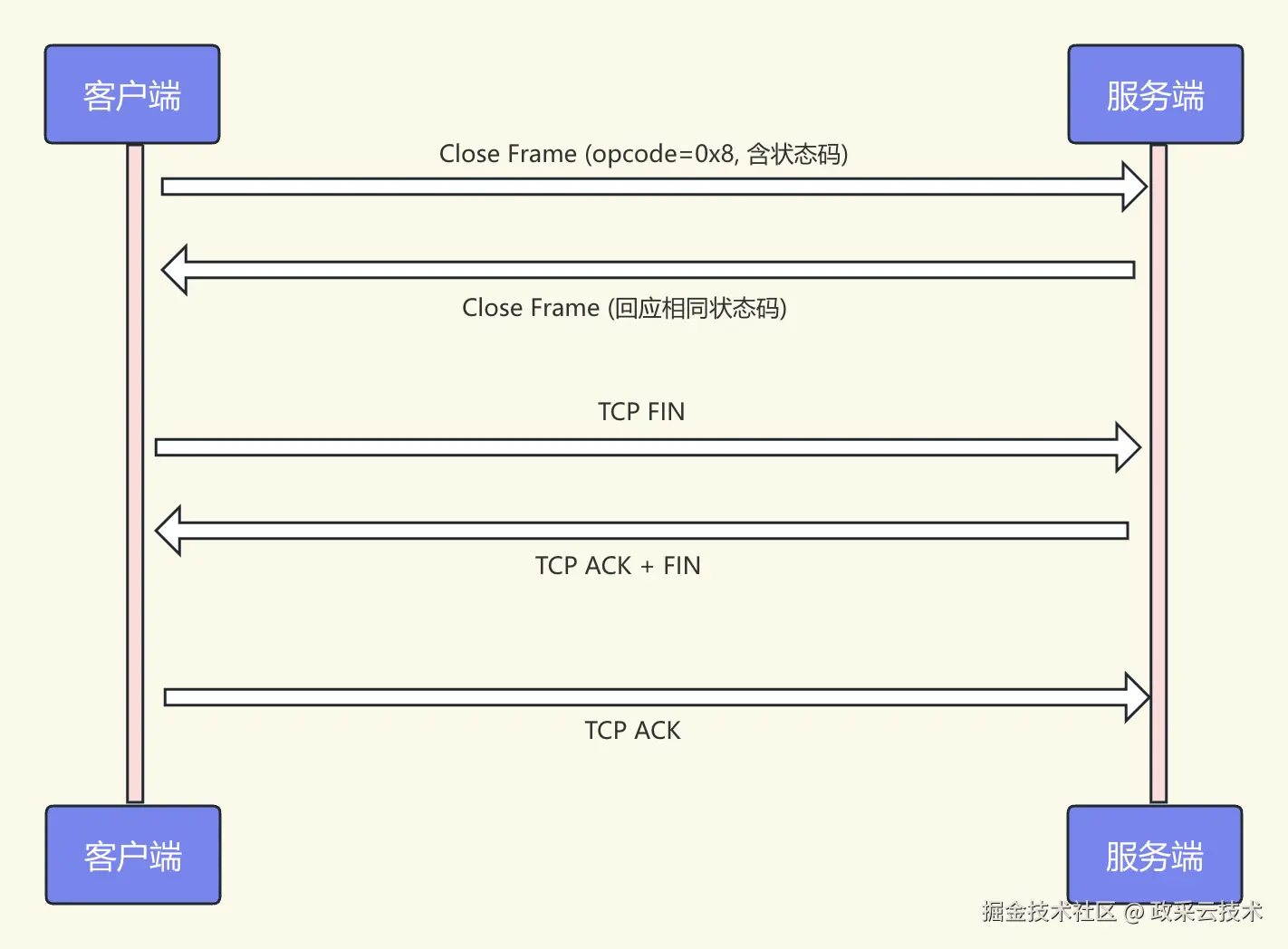 关闭流程需双方交换关闭帧, 大致流程如下: