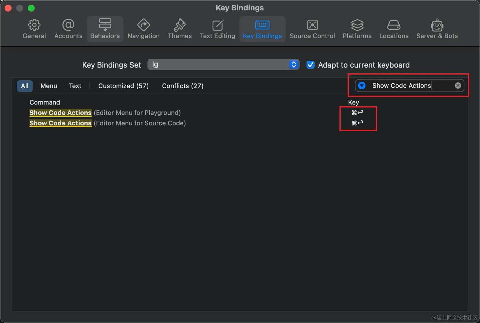 sudo vim /Applications/Xcode.app/Contents/Frameworks/IDEKit.framework/Versions/A/Resources/IDETextKeyBindingSet.plist