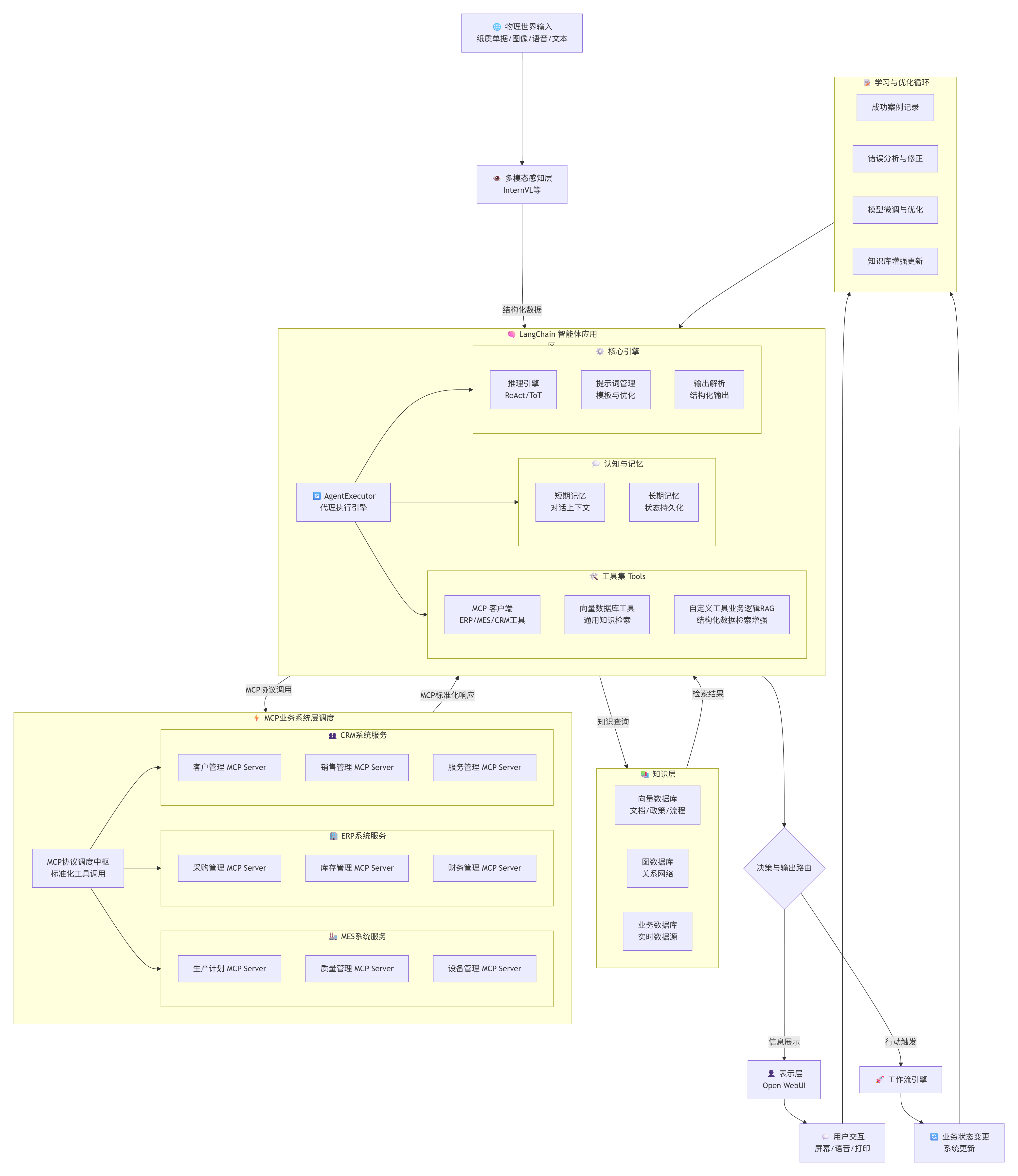 | L4: 执行层 | MCP工具箱 | MCP协议, REST API | 系统操作、工具调用 | 指令 → 业务系统 |