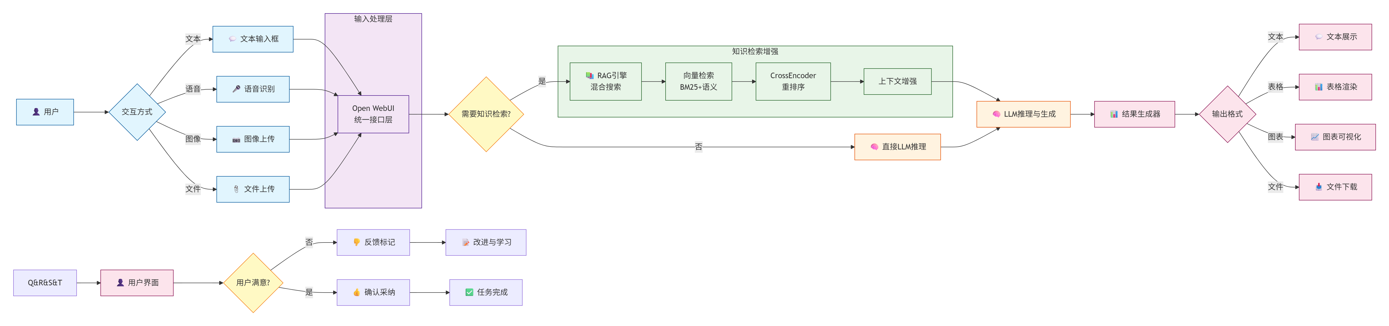 | L2: 交互层 | Open WebUI | React, Docker | 用户交互界面 | 用户 ↔ 系统 |