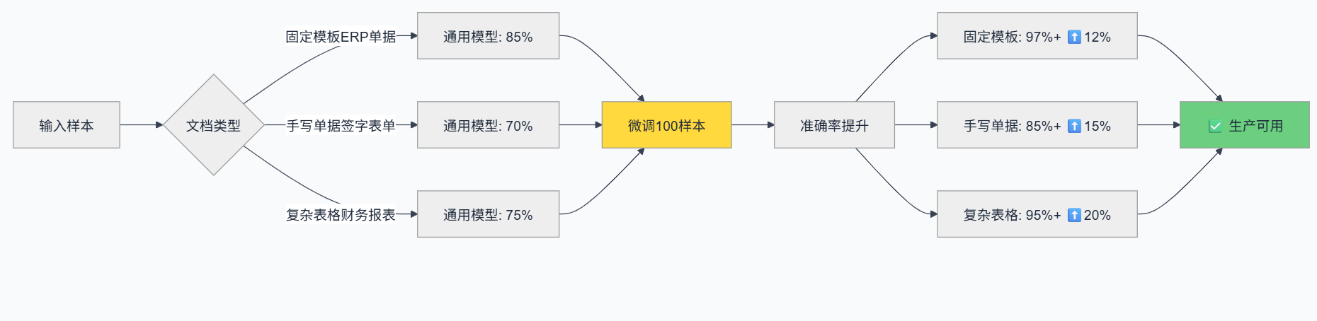 | 固定模板单据 | InternVL2-8B | >97% | 2-3秒/张 | ERP单据、表格 |