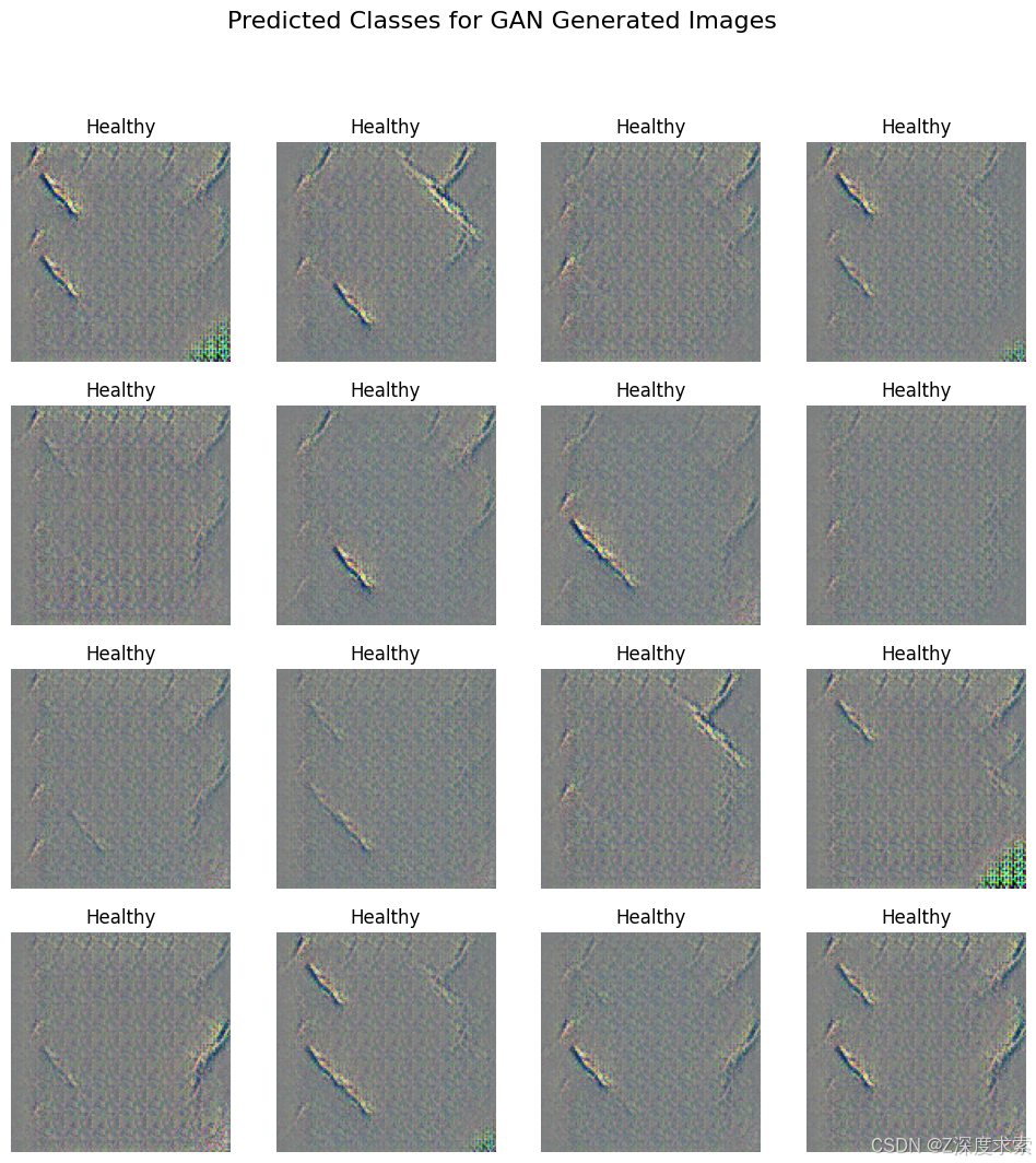 plt.suptitle("Predicted Classes for GAN Generated Images", fontsize=16)