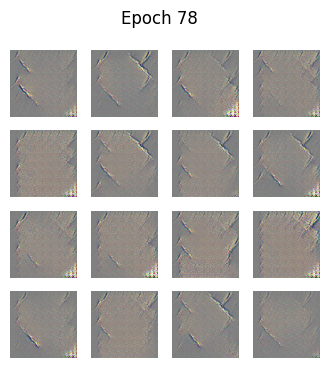 Epoch 78, Generator Loss: 3.5214, Discriminator Loss: 0.0547