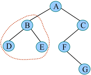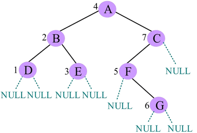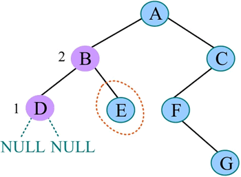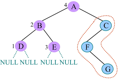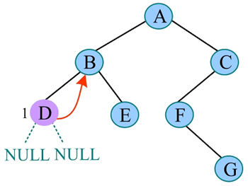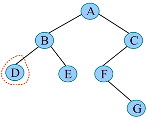 - 中序遍历 D 的左子树,D 的左子树为空,访问 D,中序遍历 D 的右子树,D 的右子树也为空,返回 B: