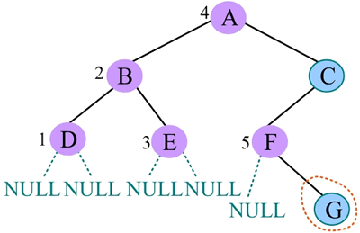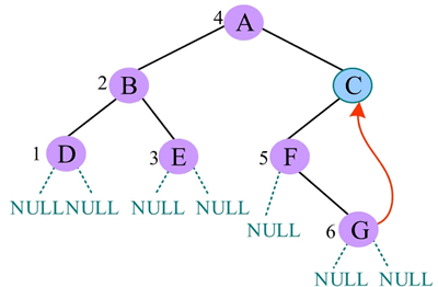 - 访问 C,中序遍历 C 的右子树,G 的右子树为空,遍历结束: