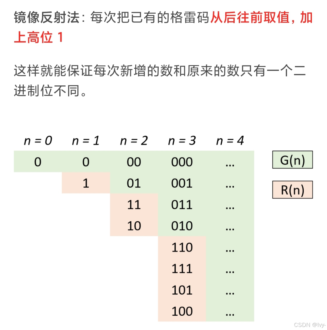 //每次把已有的格雷码从后往前取值,加上高位 1