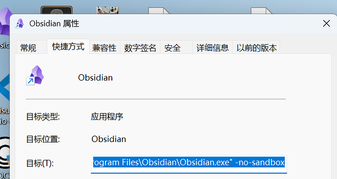 目标里面是你的Obsidian的安装位置里的那个Obsidian