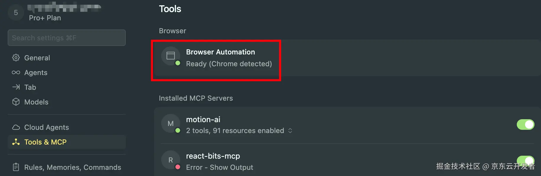 而此时,正是 MCP(Model Context Protocol)可大显身手的场景。 通过为 Cursor 配置浏览器 MCP 服务,我实现了工作流的质的飞跃: