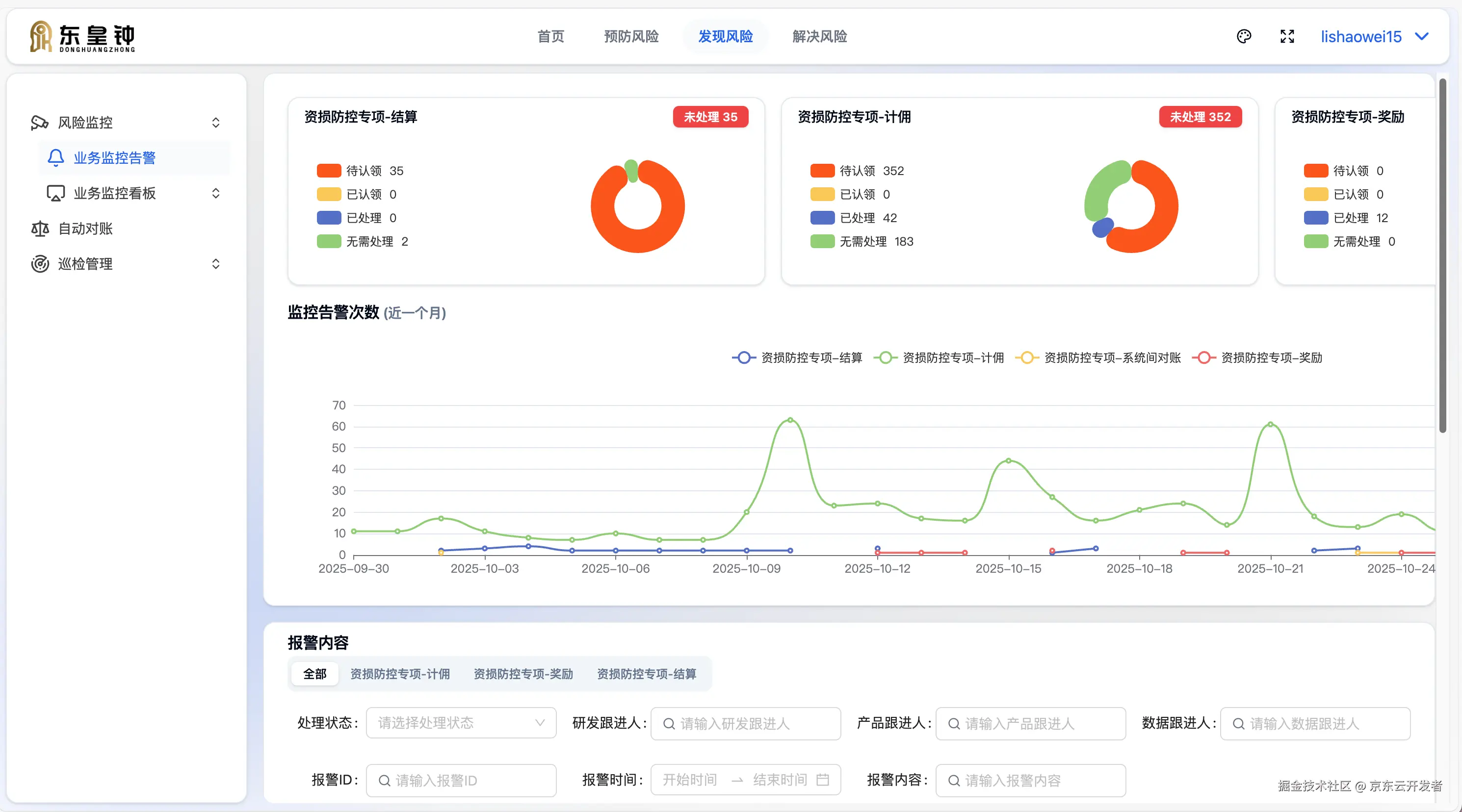 东皇钟资损防控平台 ,该项目由研发发起,在没有产品原型和UI设计的情况下,借助 Cursor 结合 Shadcn UI,我独立完成了平台 0-1 的交互与界面构建,最终成果获得了后端与测试团队的一致好评: