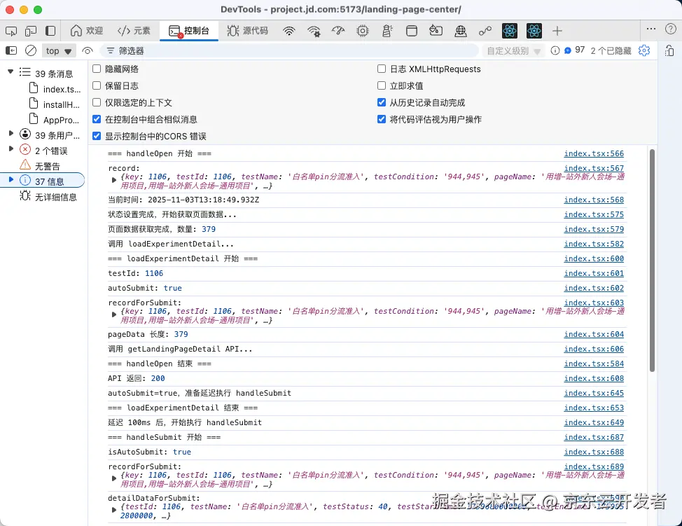 完成规则配置后,我们重新执行之前的调试对话。如下图所示,现在每个 console.log 语句的开头都已自动加上了对应的函数名作为标识,极大方便了在控制台中的筛选与查看:
