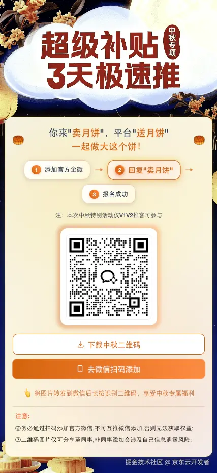 京粉app h5 页面,中秋前夕晚上 22 点业务来电话说想要一个中秋推广的活动页,使用豆包生成背景图,使用cursor进行样式设计,0-1开发仅耗费两个半小时,0:30 完成上线: