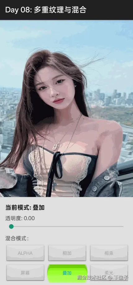 - ✅ 学习了 6 种常用混合模式:Alpha、Add、Multiply、Screen、Overlay、Soft Light