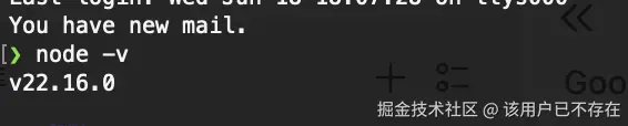接着在终端验证一下,Node.js 环境是否准备好了。
