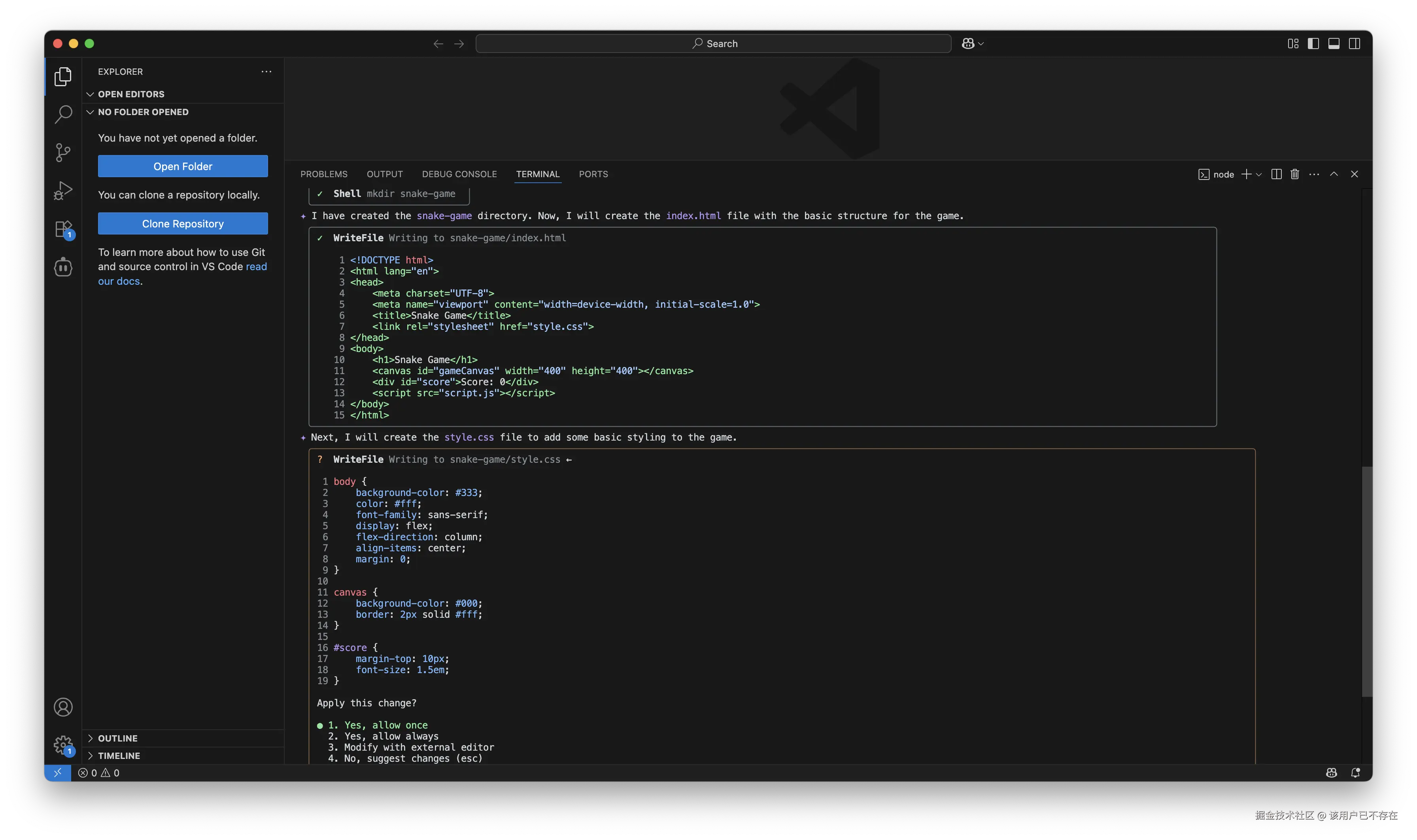 我让 Gemini CLI 帮我做个贪吃蛇小游戏。