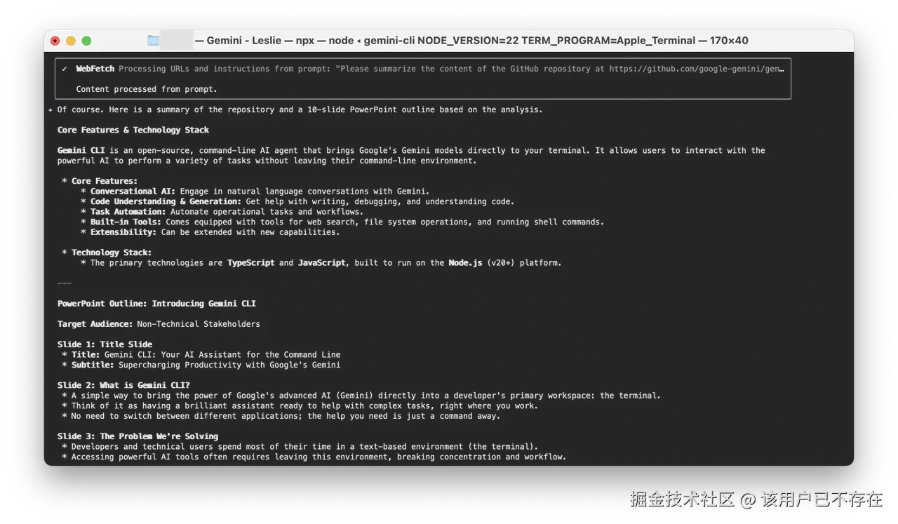 我让 Gemini CLI 分析github的网址,然后帮我生成一个PPT。