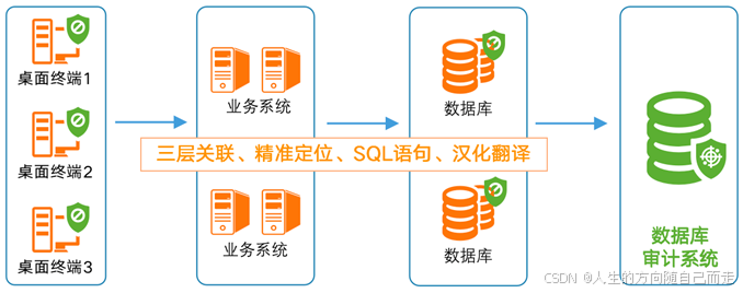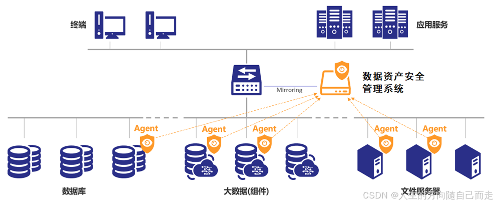 以Agent的方式部署于应用系统侧或数据库侧,实现业务系统数据的全链路流转审计,满足等保合规要求。对于非授权用户调用数据以及高风险行为进行实时告警,有效防止违规行为的发生。