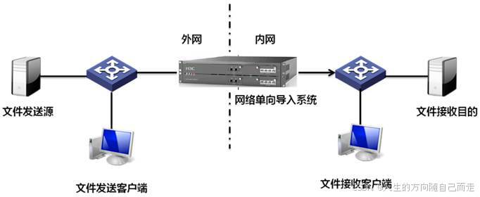 如上图所示,文件只能由外网发送到内网,由于物理单向,反向无法进行传输。文件传输可以支持各种格式文件,并可根据相应策略进行检查