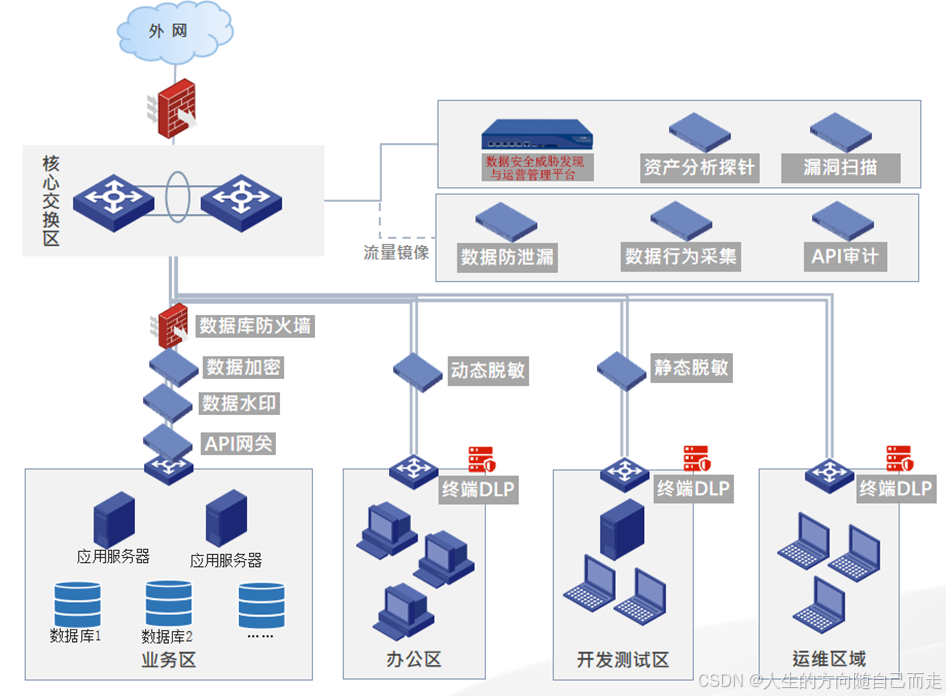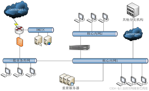 网络环境中有数据中心、对外发布服务器、邮件服务器、桌面终端等;