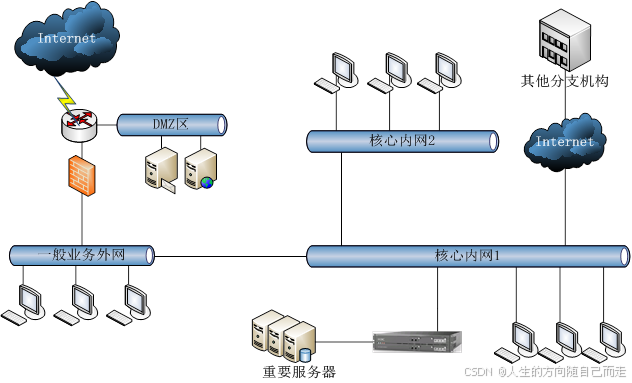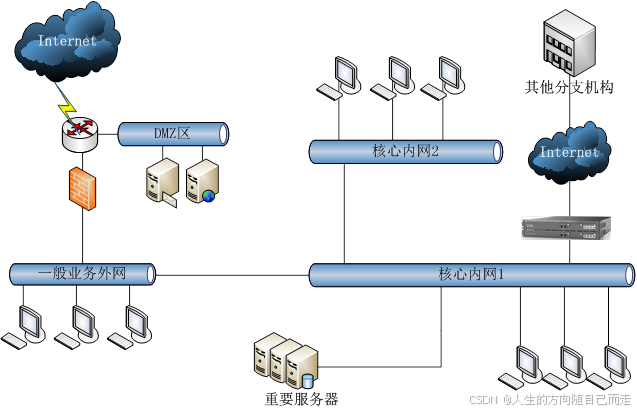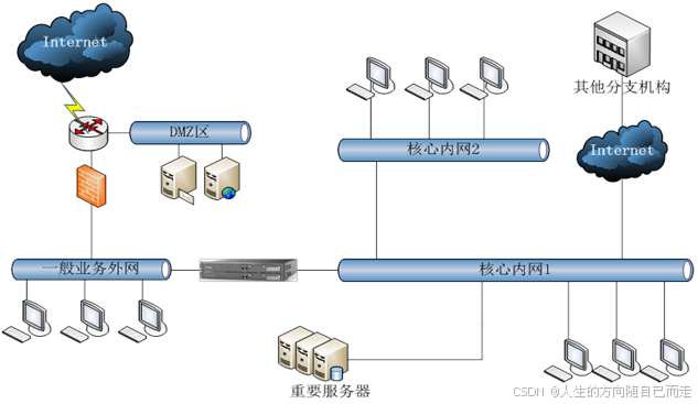 一些用户的内网可能比较庞大,并且按照不同职能、接入的人员、重要程度划分成不同的安全区域。这些区域间的通讯也会有隔离要求。
