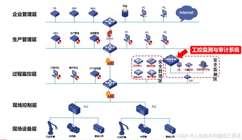 旁路部署监测审计数据流,不占用原有网络的带宽资源,完全不影响原有系统的生产运行,部署在汇聚层交换机镜像端口,起到区域之间的监测审计作用,部署在系统与系统之间的边界,起到边界之间的监测审计作用。