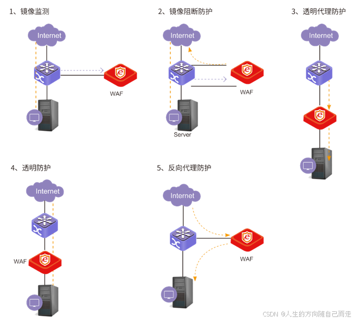 WEB应用往往是组织内的重要业务系统,稳定性要求较高,对于安全产品的部署模式有着多种多样的需求。H3C SecPath W2000-G510 Web应用防火墙能够与客户的网络架构高度融合,支持镜像监测模式、镜像阻断防护模式、透明代理防护模式、透明防护模式、反向代理防护模式等多种防护方式,符合客户的IT管理要求。