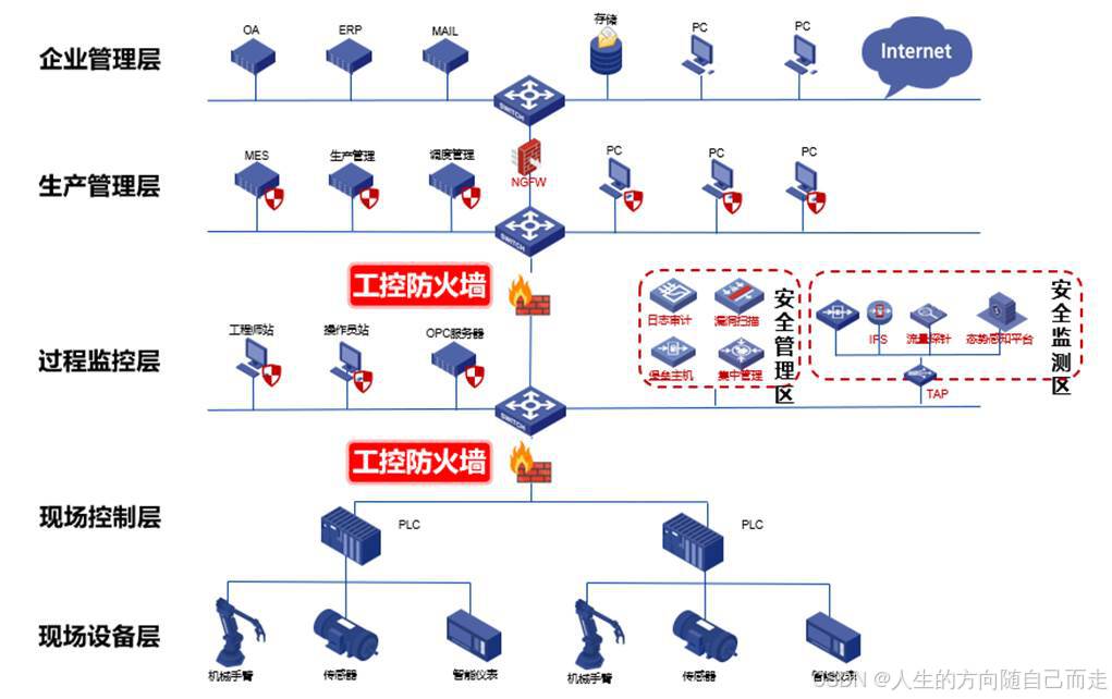 在现场控制层的工程师站、操作员站、服务器以及网关机(Buffer)上部署专用的工控主机安全卫士,通过应用程序、USB移动存储设备的白名单策略,防止用户的违规操作和误操作,阻止不明程序、移动存储介质的滥用,有效提高工控网络的综合"免疫"能力。
