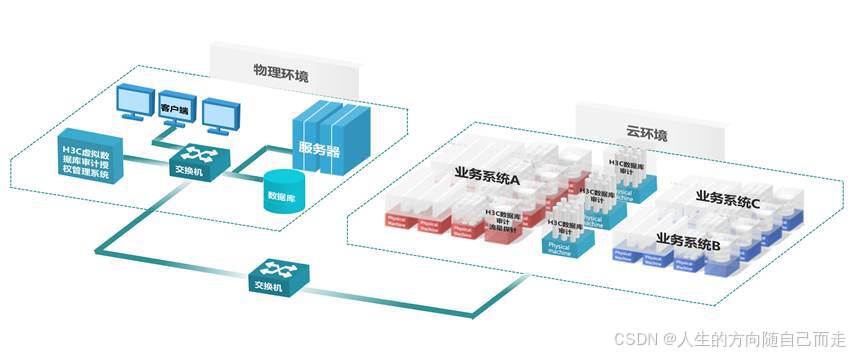 H3C SecPath D2000-AK系列数据库审计系统以旁路监听的方式接入网络,通过在交换机上将访问数据库的流量镜向或采用TAP分流监听等方式,使数据库审计系统能够监听到用户通过交换机与数据库进行通讯的所有操作。