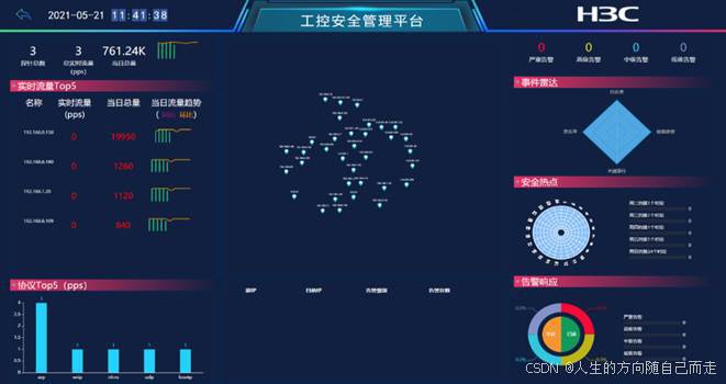 H3C CSAP 数据安全威胁发现与运营管理平台大屏展示图