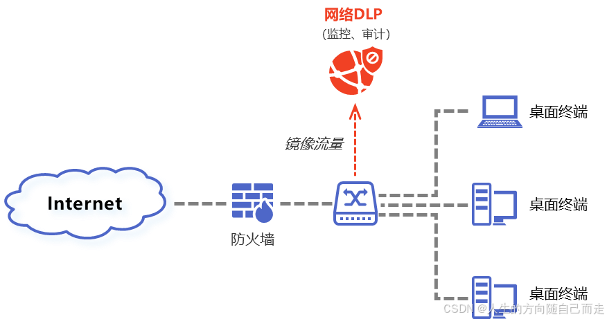 当网关工作在审计模式下,网络DLP的部署不会影响组织当前的网络架构,网关服务器支持以下数据接收方式: