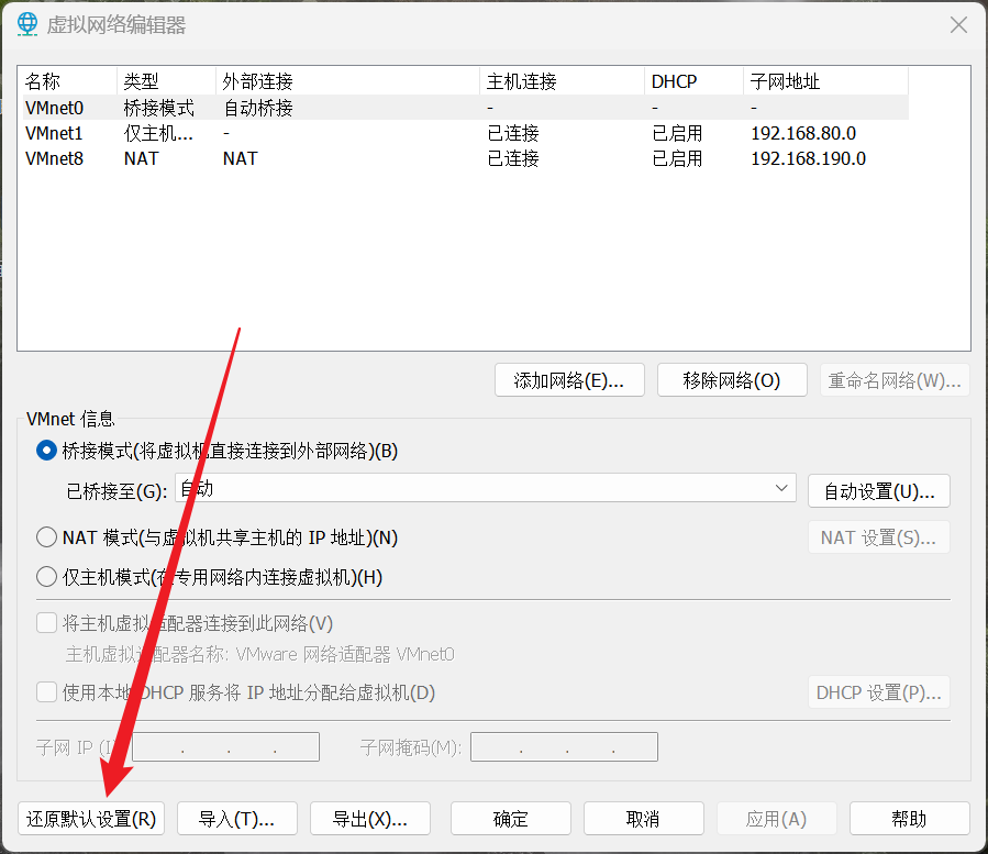 2.直接重置虚拟机网络设置