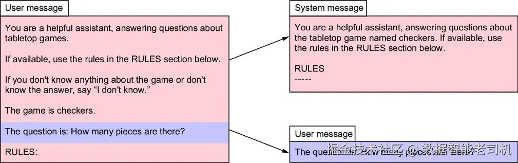 底层 LLM 能基于自身训练回答关于跳棋的问题。这种方式适用于知名游戏 (如跳棋、国际象棋);但对于较新/不那么出名 的游戏可能会吃力。下一章我们会看到如何让 LLM 回答超出其训练范围的问题。