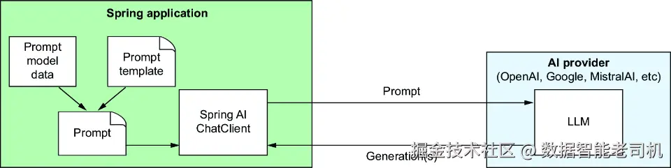 - 上下文可包含输出格式化指令,例如要求以 JSON 返回,以便绑定到 Java 对象。