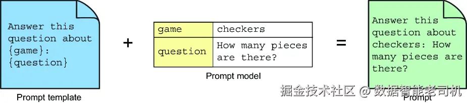 为了演示提示模板如何工作,我们从第 1 章的示例出发,把它扩展为能回答各类桌面游戏(如跳棋、Monopoly,或更现代的欧式桌游如 Catan、Wingspan)的问答。