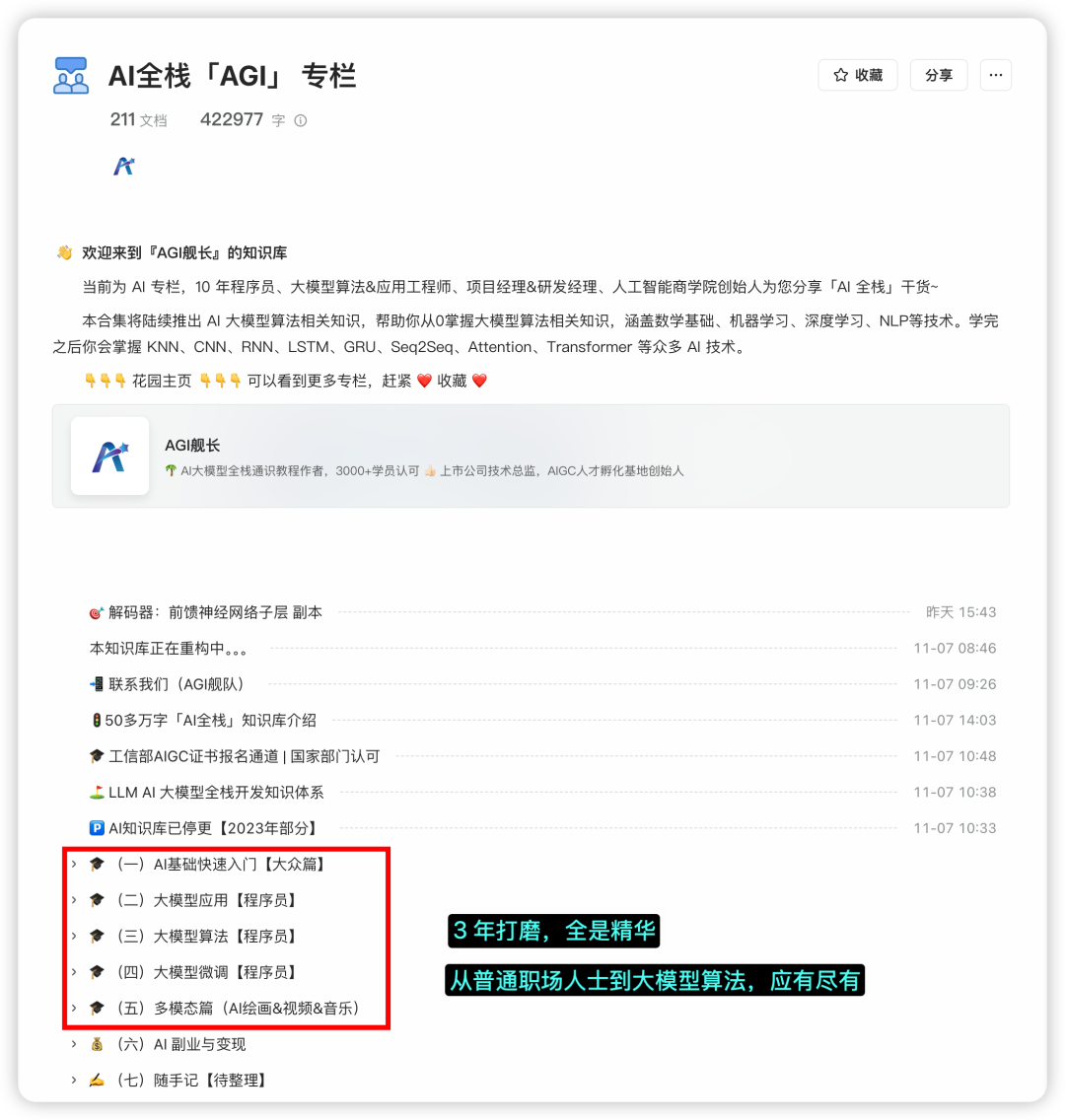 3 年打磨,全是精华,从普通职场人士到大模型算法,应有尽有!