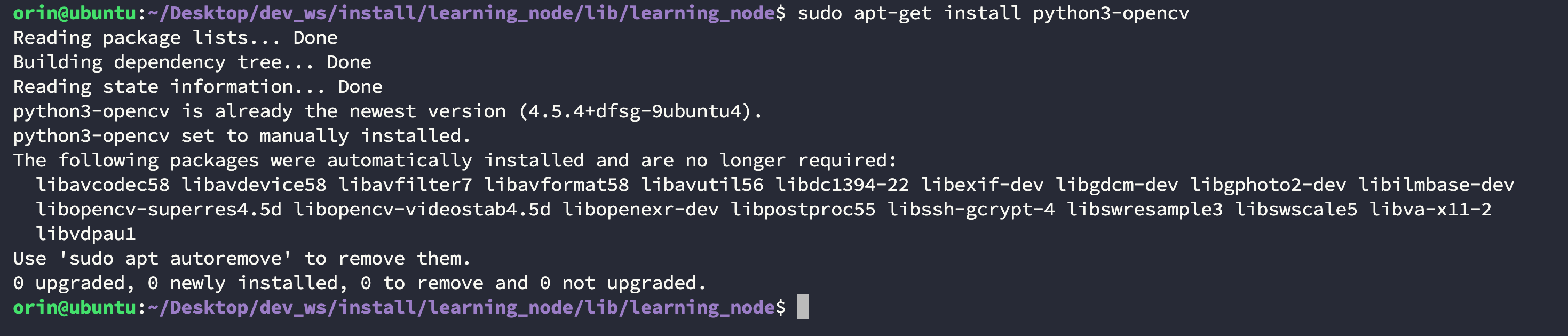 $ sudo apt-get install python3-opencv