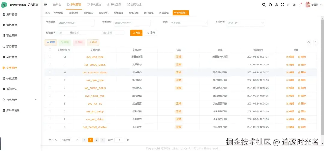 - 文章简介: ZrAdminNetCore 是一款基于前后端分离架构、跨平台部署的通用权限管理后台系统,采用 RBAC(Role-Based Access Control) 权限模型设计,支持多租户、动态菜单、细粒度权限控制等功能。项目以 .NET Core 为后端技术栈,结合现代化前端框架构建,适用于企业级中后台管理系统快速开发。