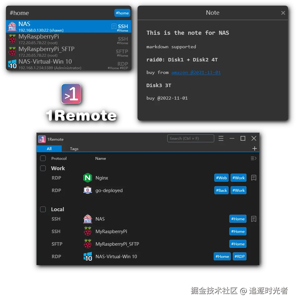 - 文章简介: 1Remote 是一个现代化的个人远程会话管理和启动器,适用于需要管理多种不同协议远程会话的用户。无论是系统管理员、开发人员还是IT支持人员,都可以通过1Remote在一个集中的地方管理他们的所有远程连接,提高工作效率和便利性。
