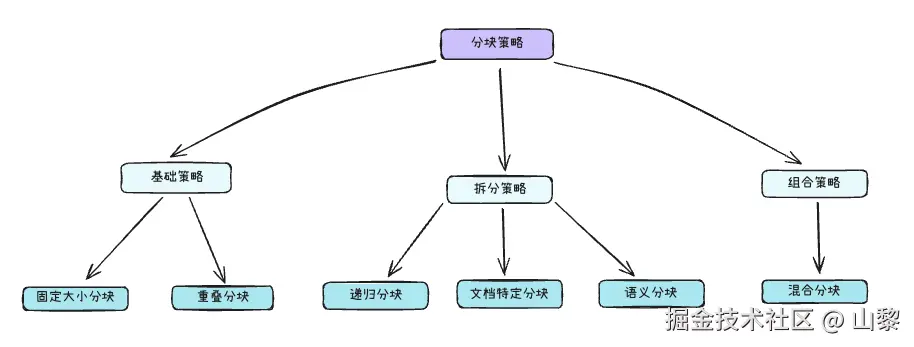 - 特点:结合多种策略(如先按标题分块,再对长段落递归拆分)。
