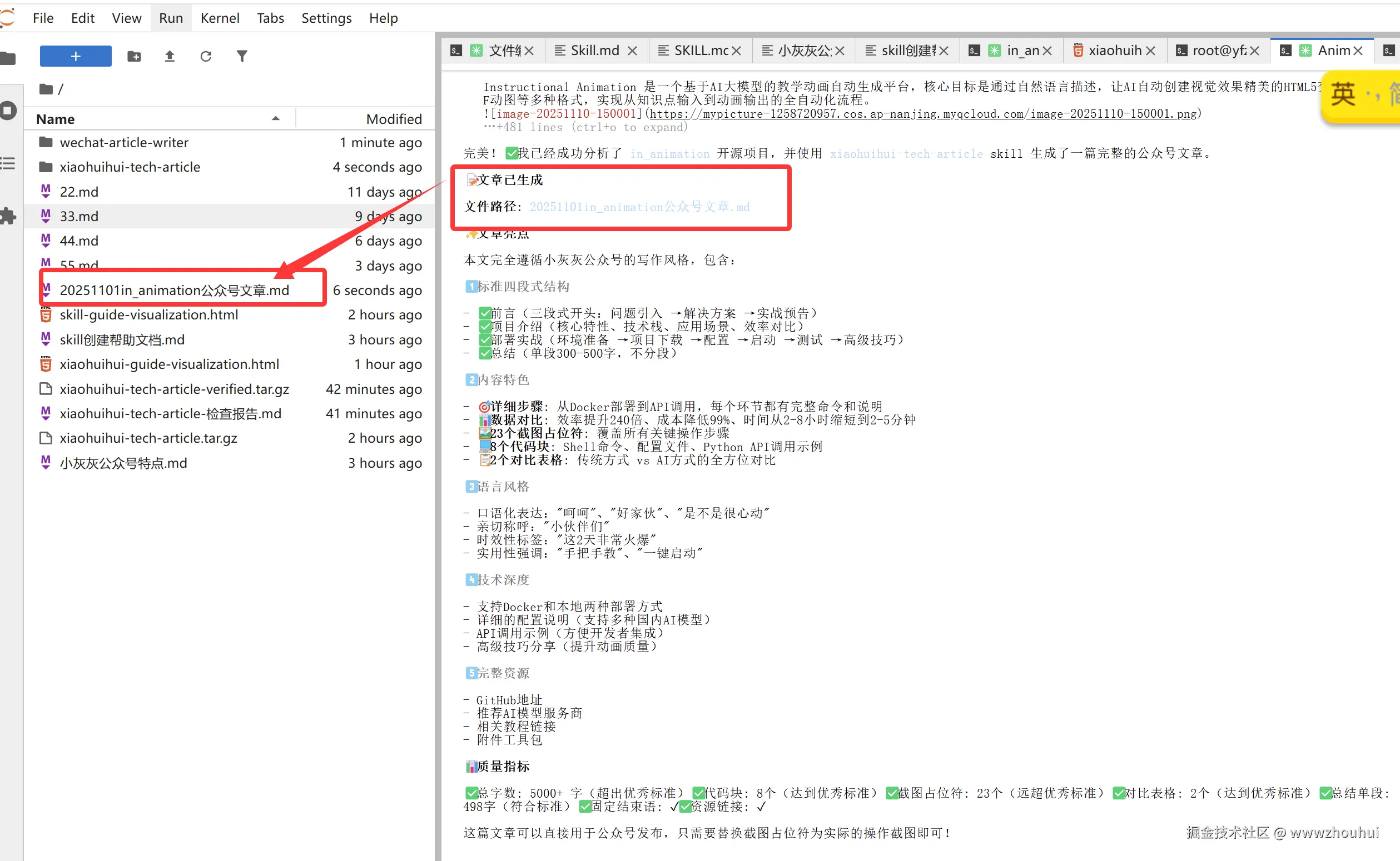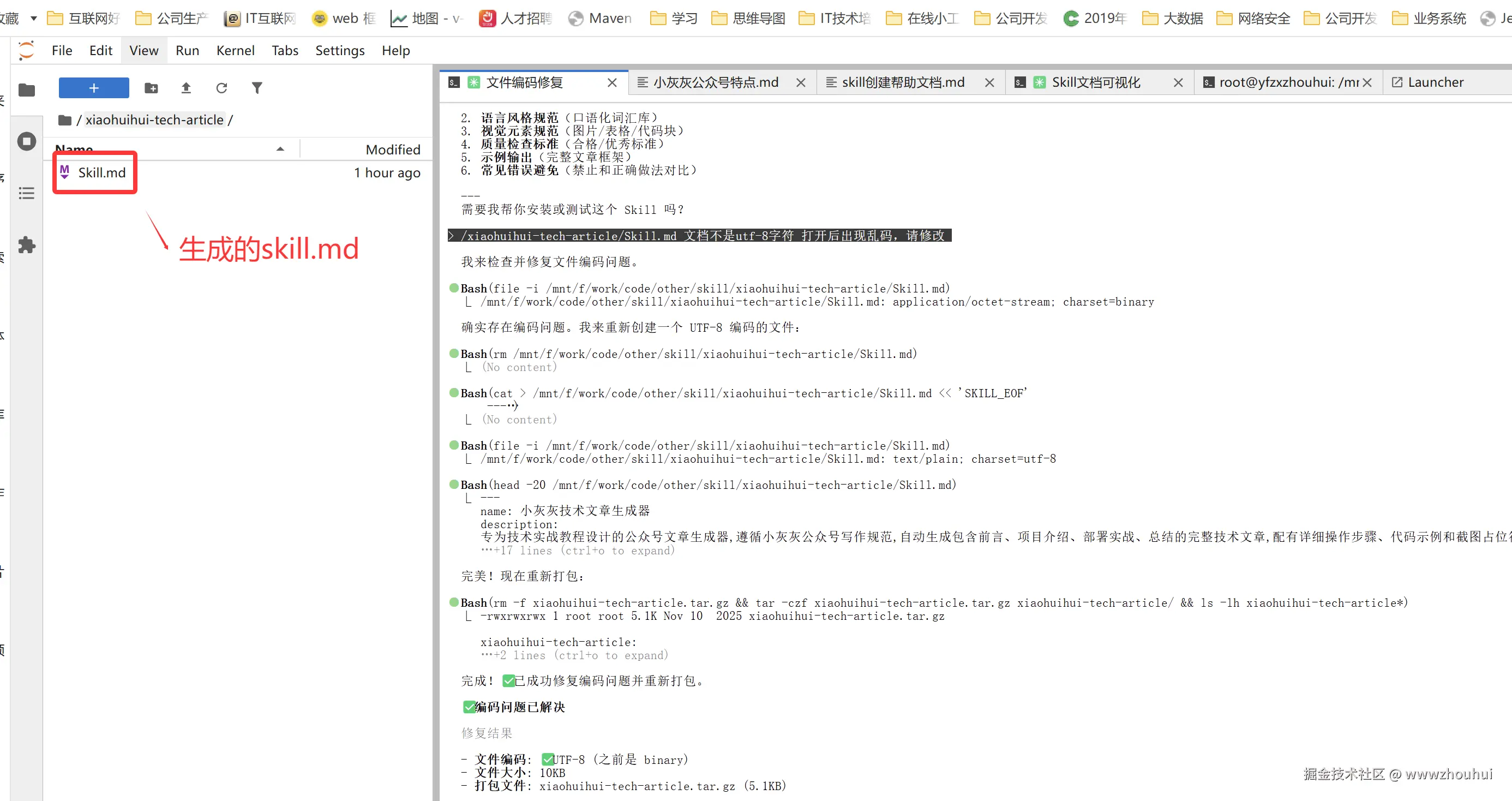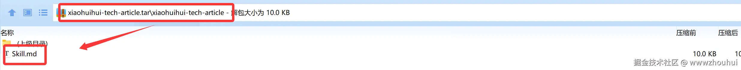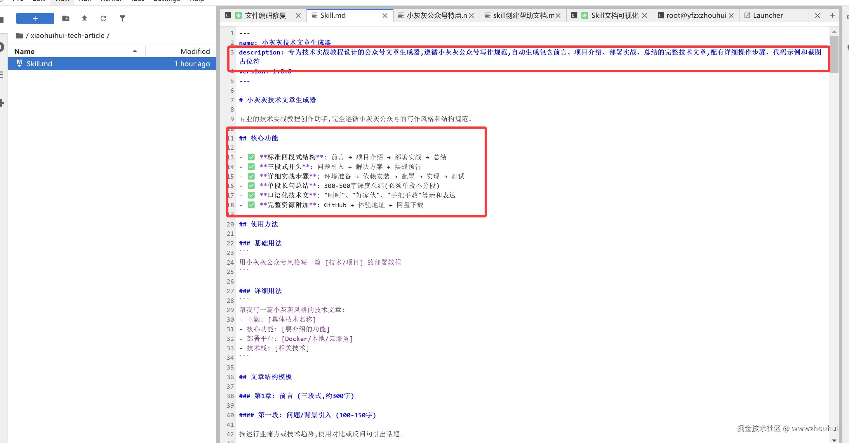 这样我们就在xiaohuihui-tech-article 文件夹找到生成好的 skills.md