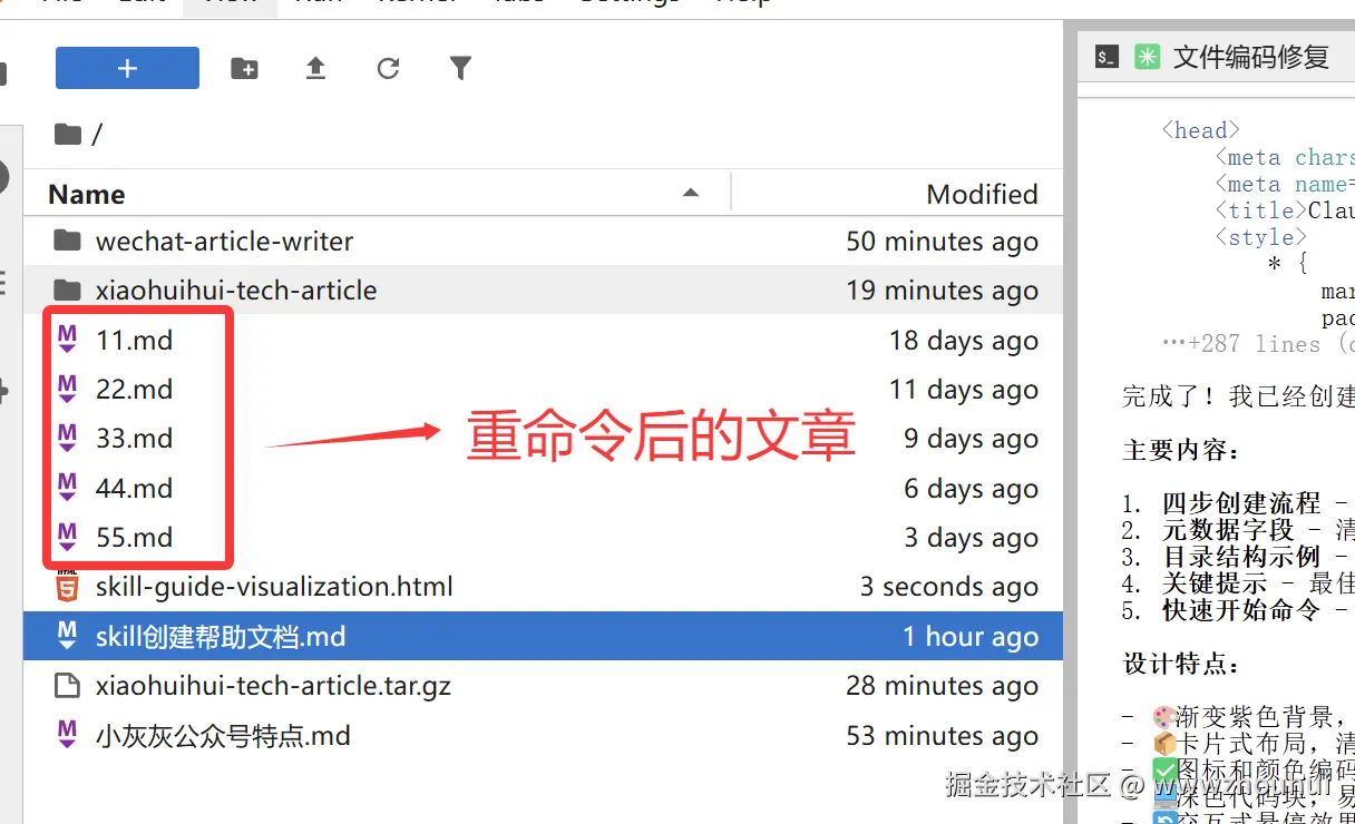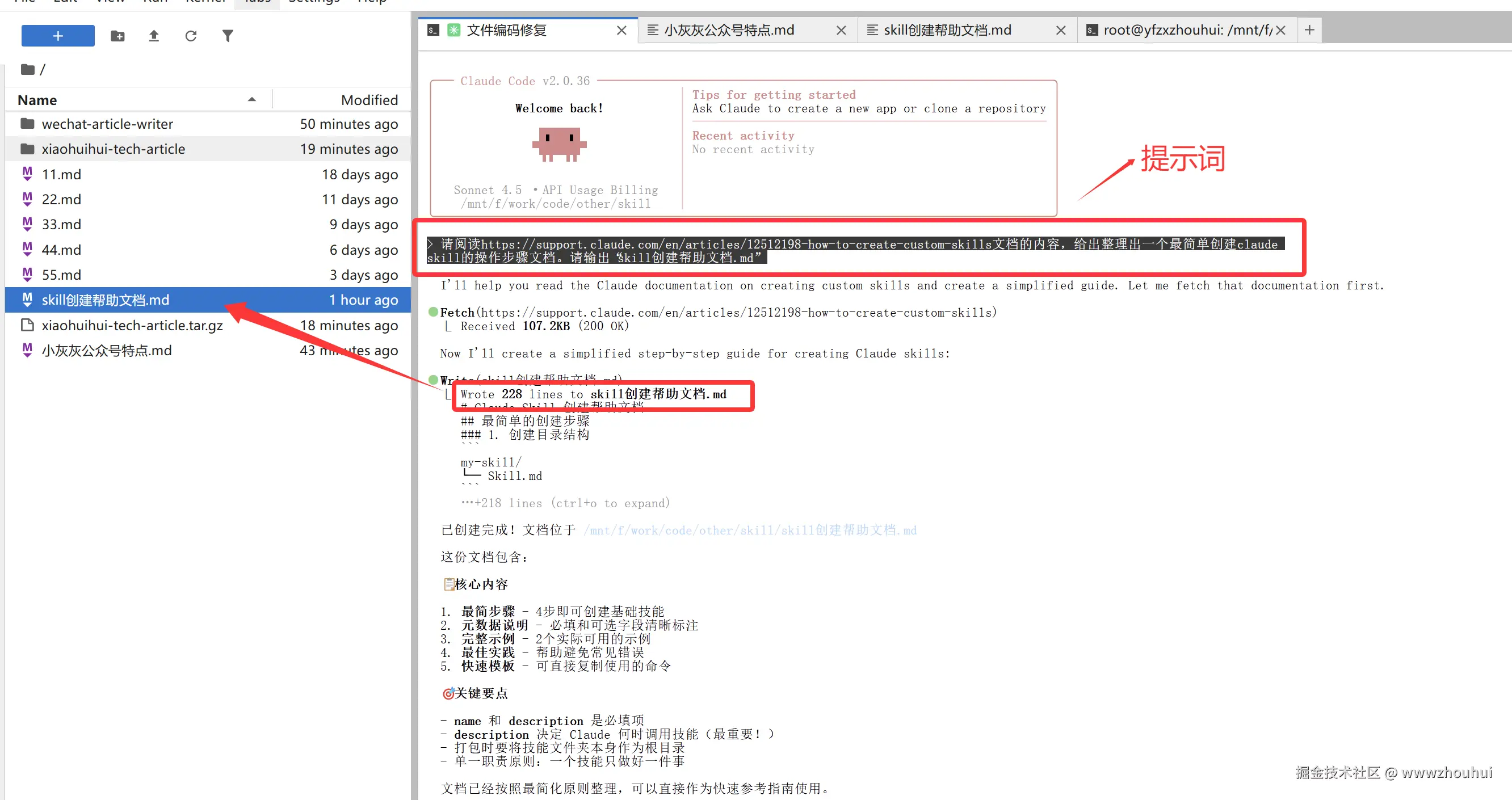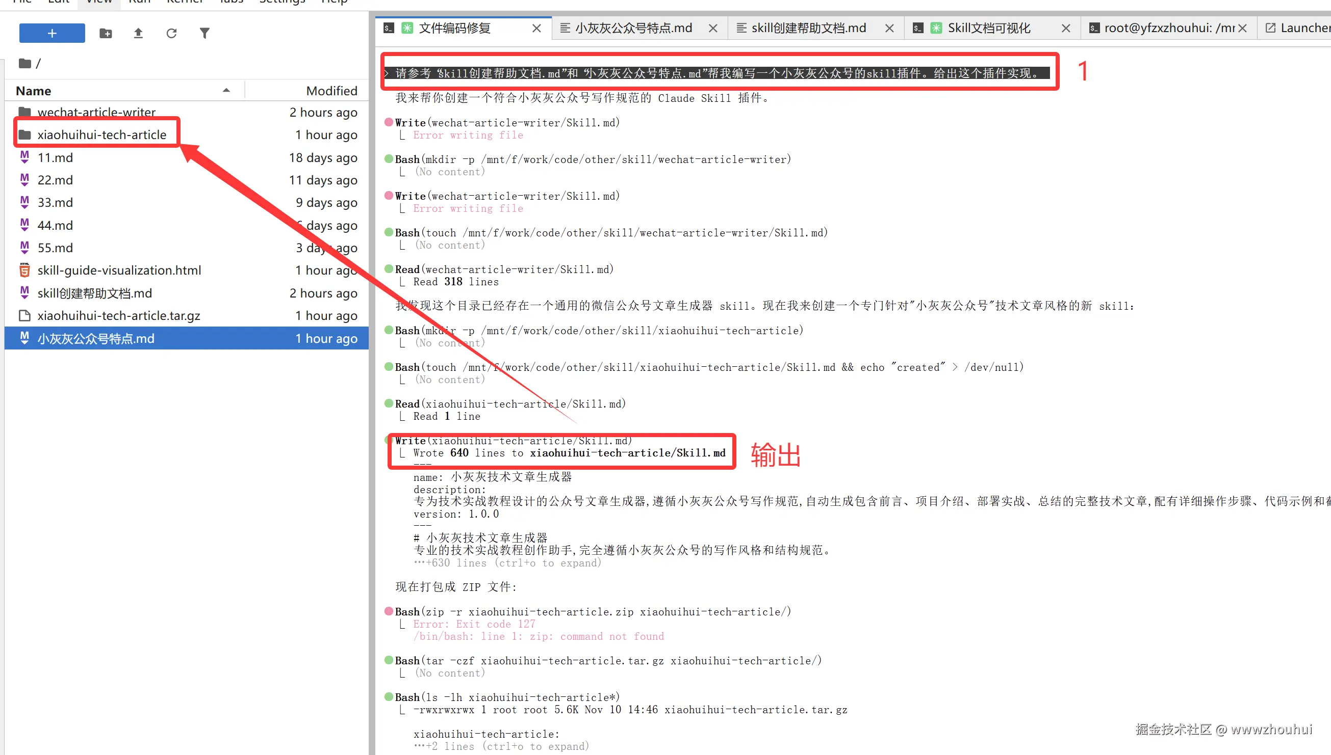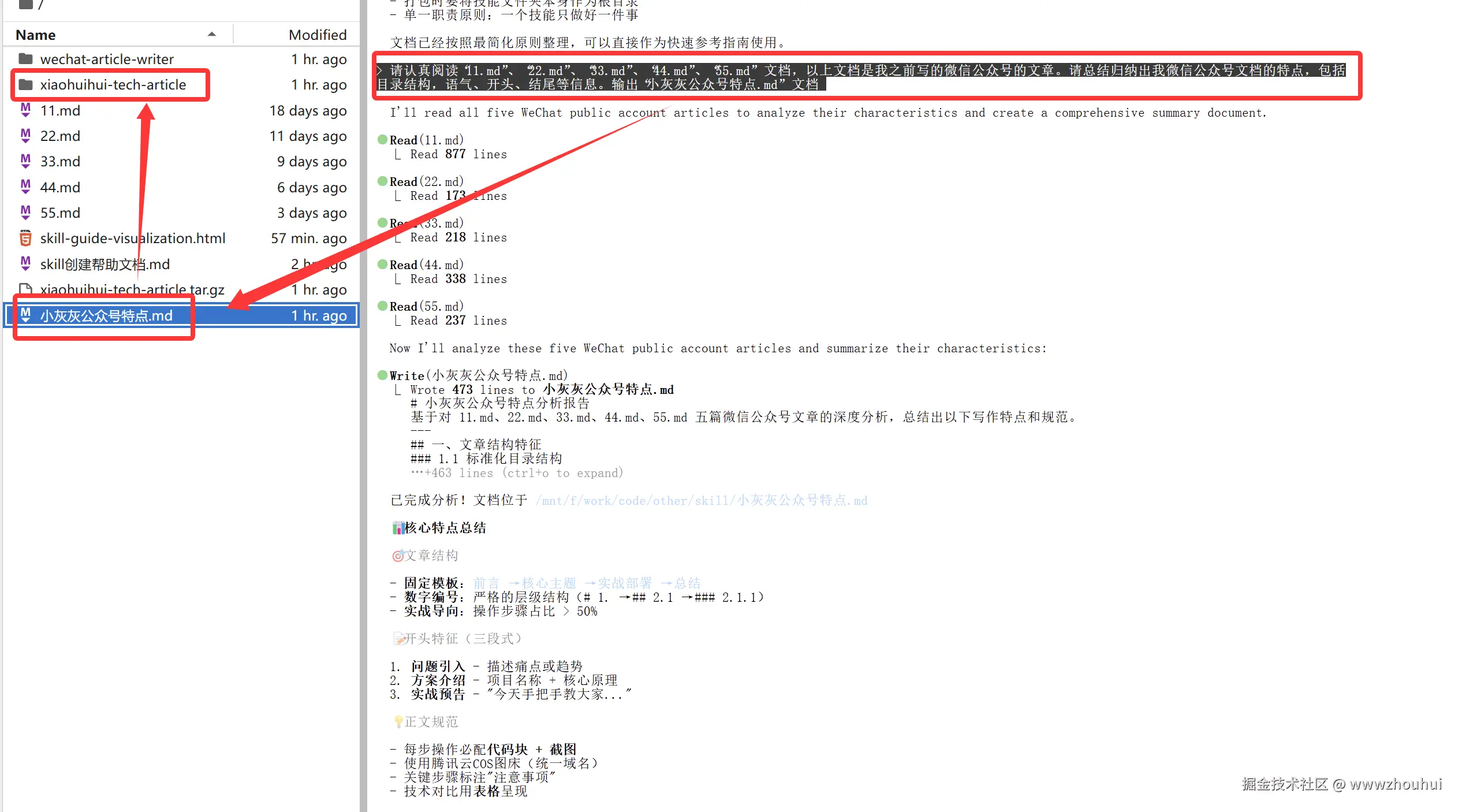 这样我们就在xiaohuihui-tech-article 文件夹找到生成好的 skills.md