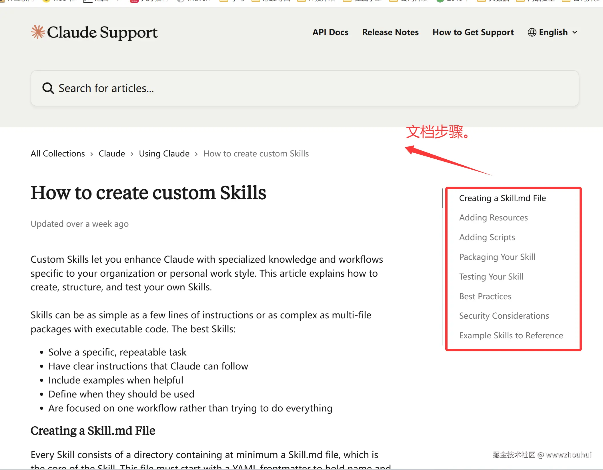 首先我们需要在Claude 官方文档中查看一下Skills 创建步骤。我们可以打开support.claude.com/en/articles...