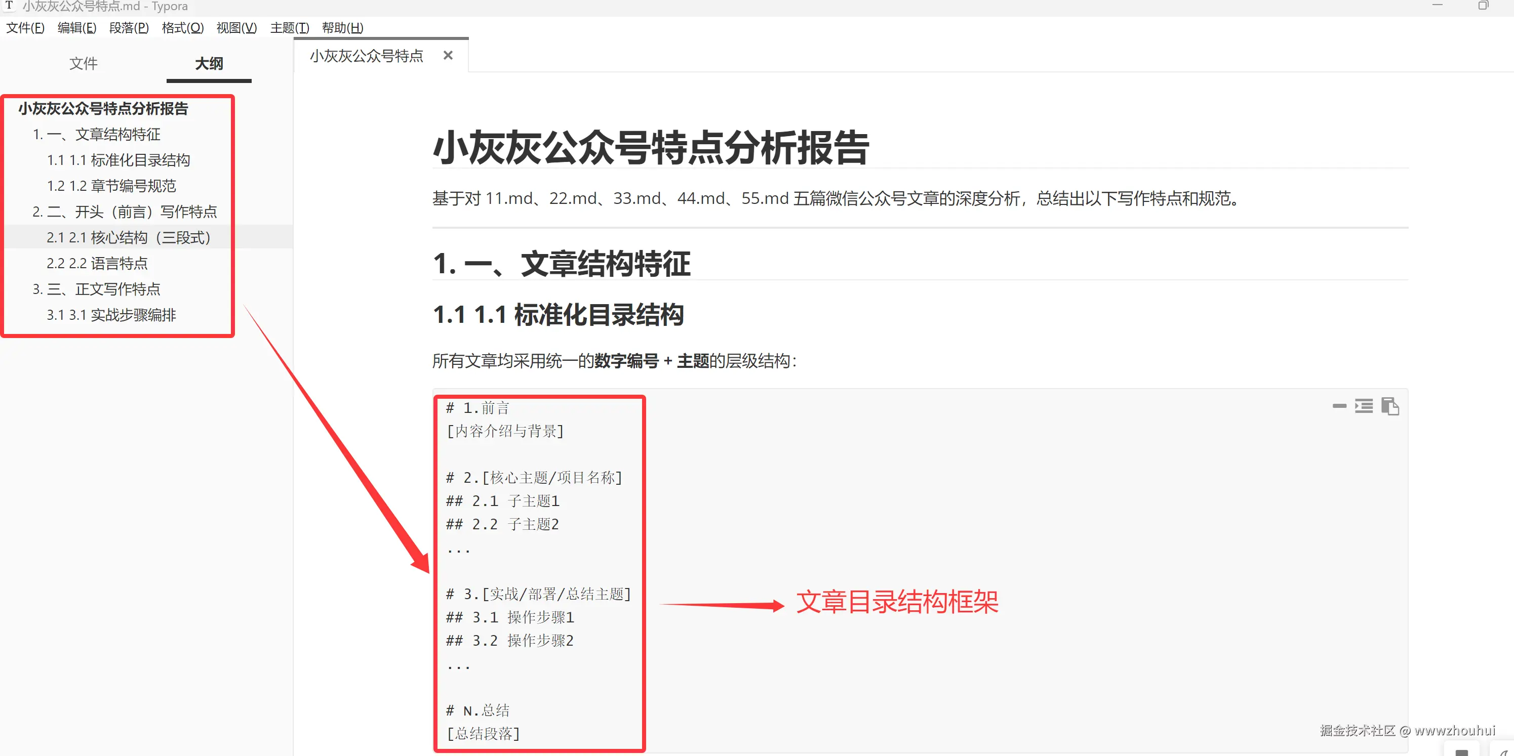 请认真阅读"11.md"、"22.md"、"33.md"、"44.md"、"55.md" 文档,以上文档是我之前写的微信公众号的文章。请总结归纳出我微信公众号文档的特点,包括目录结构,语气、开头、结尾等信息。输出"小灰灰公众号特点.md" 文档