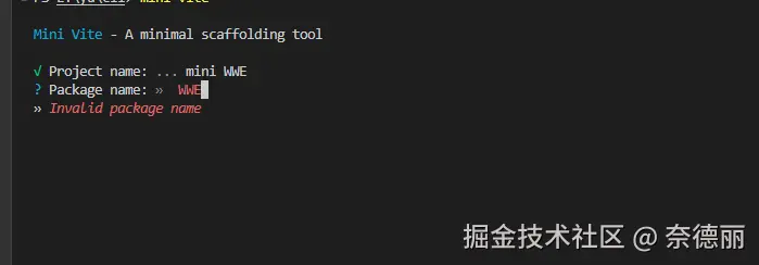 用 prompts 询问用户输入项目名称,默认是 mini-vite-project。如果用户直接按回车或者 Ctrl+C 取消,就退出程序。