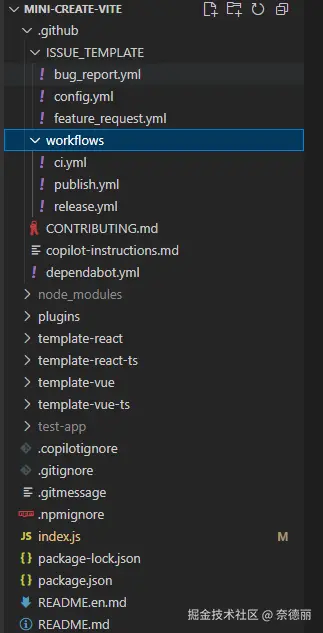 周末闲着没事,突然想研究一下 create-vite 是怎么实现的。打开源码一看,我人都傻了------核心逻辑就几百行代码!这让我突然来了兴致:既然这么简单,为什么不自己撸一个呢?