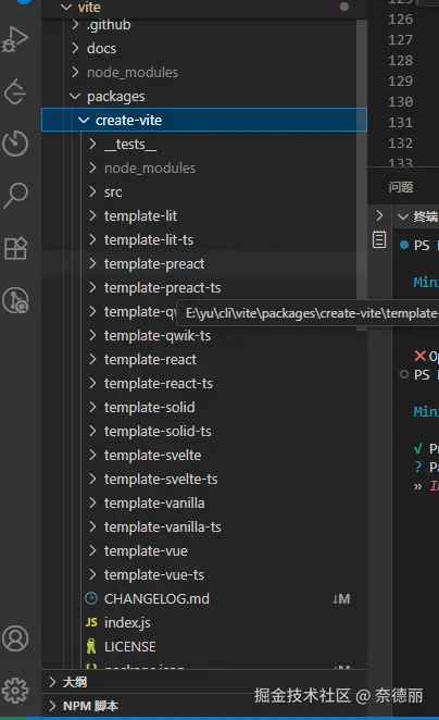 学习当然是为了解决自己的疑惑,以前通过npm create vite,不知道实际上是怎么运行的,之前一直以为我执行了这个命令之后,vite cli是根据用户选择实时动态生成内容,简单点说,就是当你在Vue、React等众多框架中选择Vue时,cli是动态生成了vue模板,其实不是这样,它是提前创建了很多个template,比如js和ts就对应了不同模板,而React和Vue也是,他俩组合就有4个模板。
