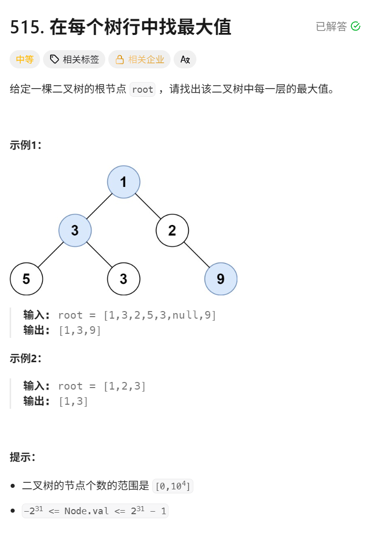 这道题应该是这个系列最简单的了, 找每层的最大值, 然后加入到列表中